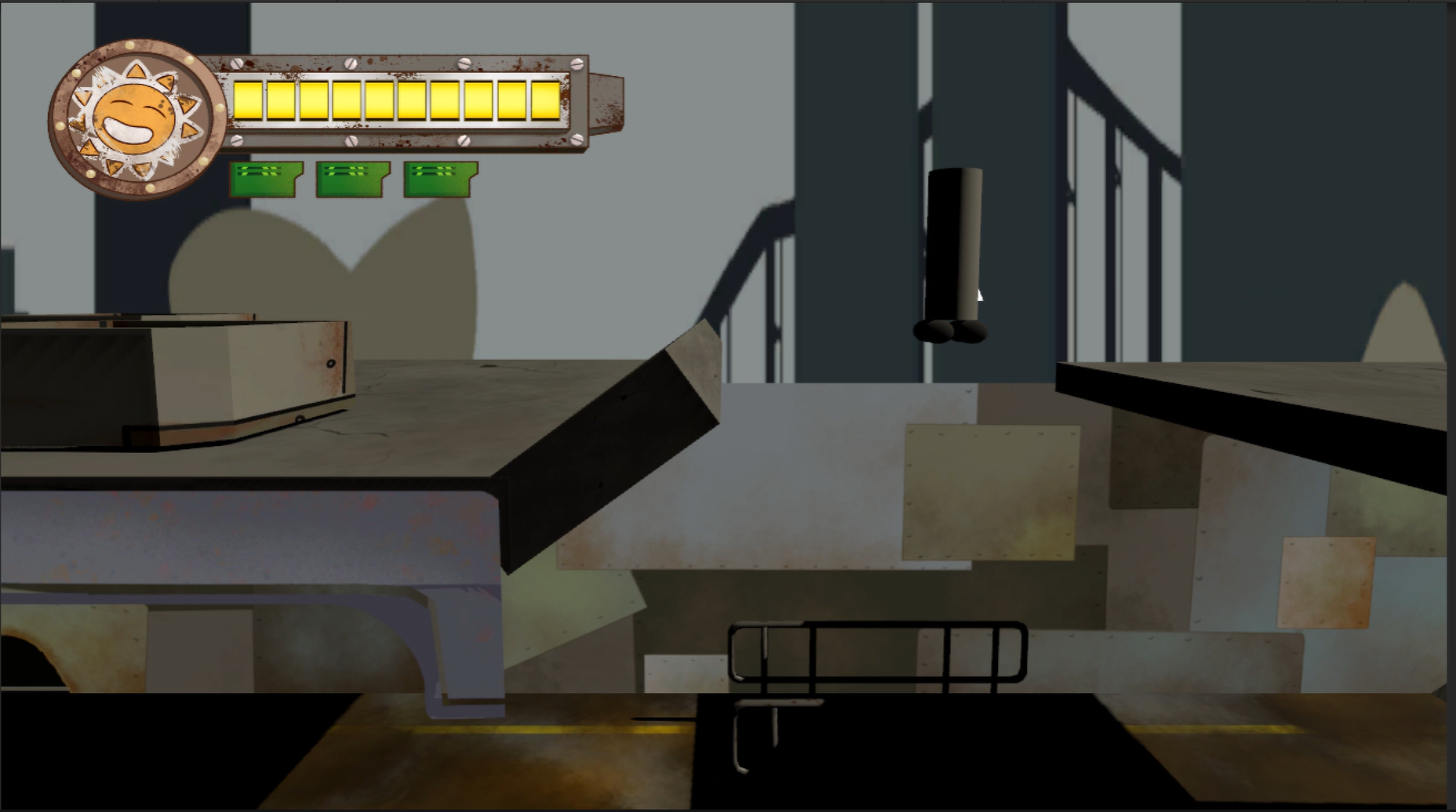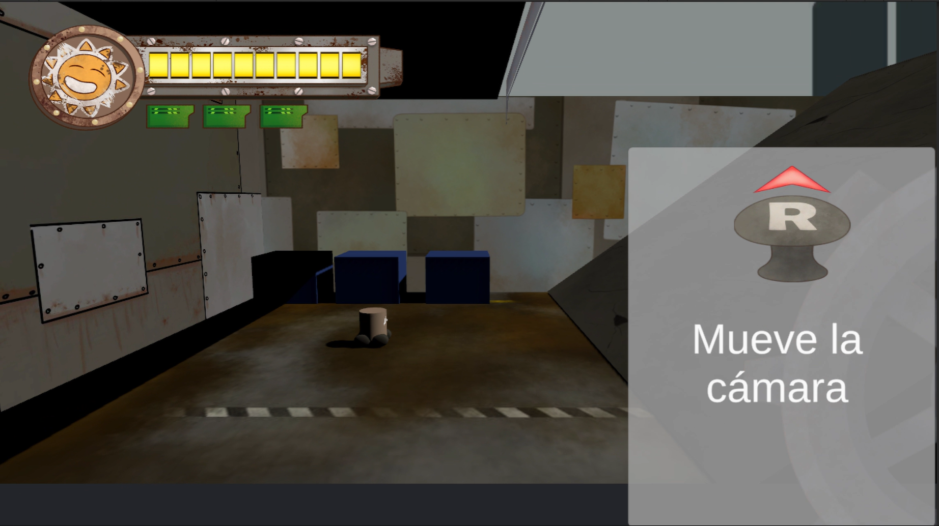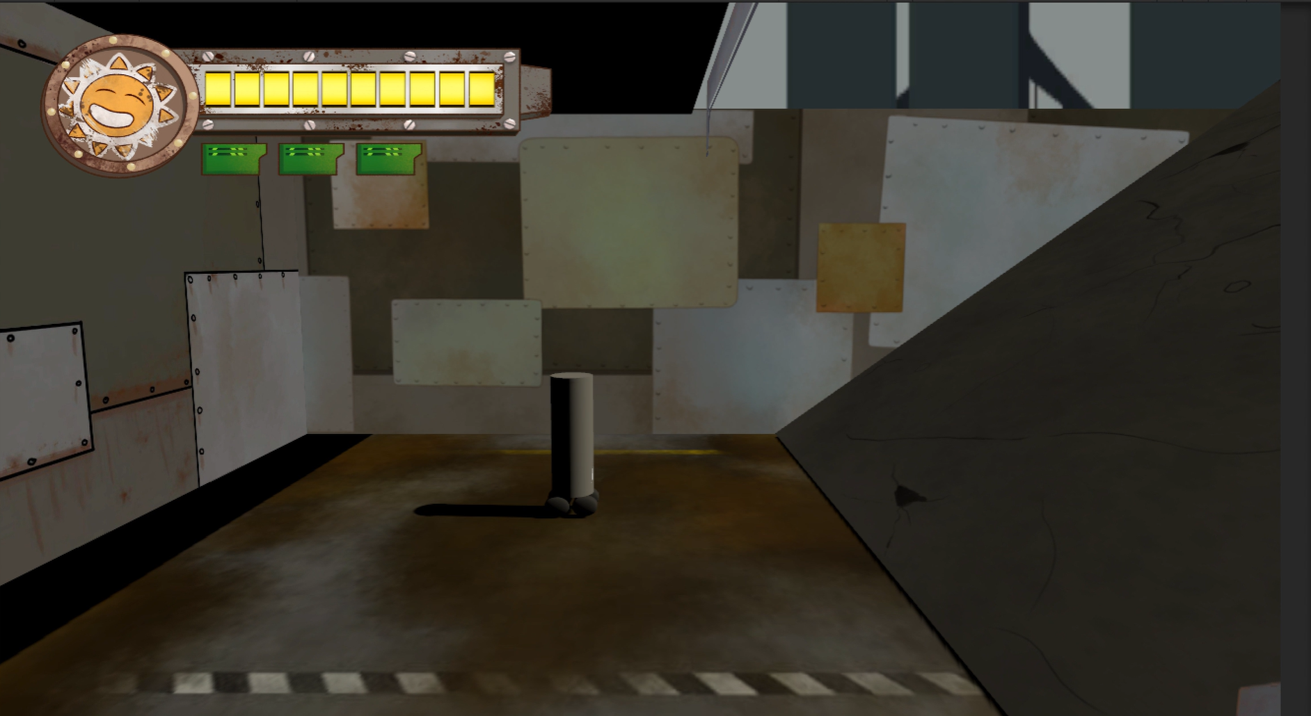 Un pequeño robot solar se enfrenta a una realidad posapocaliptica, encuentra distintos objetos para cubrirse y cambiar su apariencia, debe avanzar por la luz y evitar la sombra porque su fuente de almentacion esta algo dañada por el tiempo y se descarga tan pronto no le da el sol.